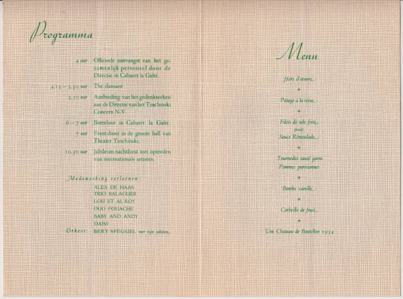 Na de première was er een feestmaal voor genodigden. (oktober 1947)