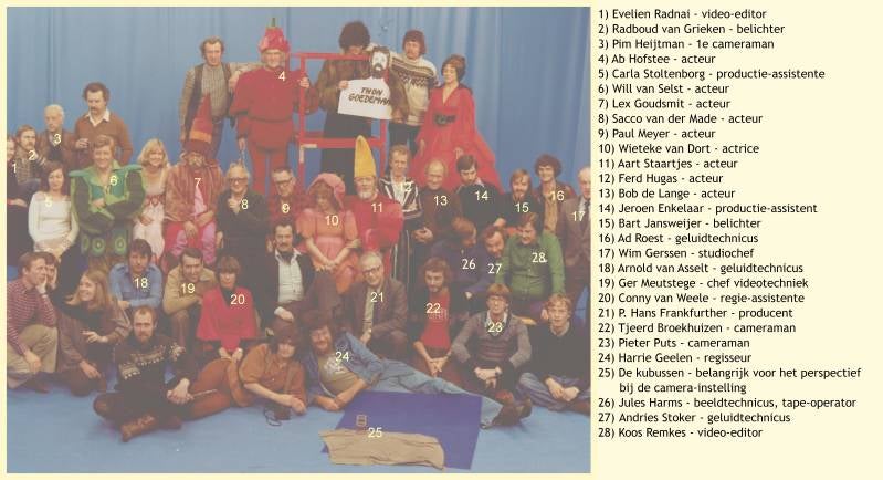 In 1978 werd de Pinkeltje speelfilm gemaakt. Dankzij de chroma-keytechniek konden de Pinkels klein rondlopen in de grotemensenwereld. De Pinkels werden in de studio van Video Hilversum tegen blauw opgenomen en gekeyed in de van te voren opgenomen beelden die hun achtergronden moesten vormen. Met behulp van een grote en een kleine kubus die aan het begin van alle achtergrondshots was opgenomen (ik meen in een verhouding van 1:10) konden de kameramensen de zoom- en hoogte-instelling van het shot in de studio bepalen. Een vondst van regisseur Harrie Geelen. De foto toont bijna alle medewerkers. Ik was er blijkbaar niet op die dag. Vader Otto ook niet, die na de videomontage met de (loodzware) videobanden in zijn koffer naar Amerika ging om beeld en geluid te laten overzetten op 35-mm film voor de bioscopen.