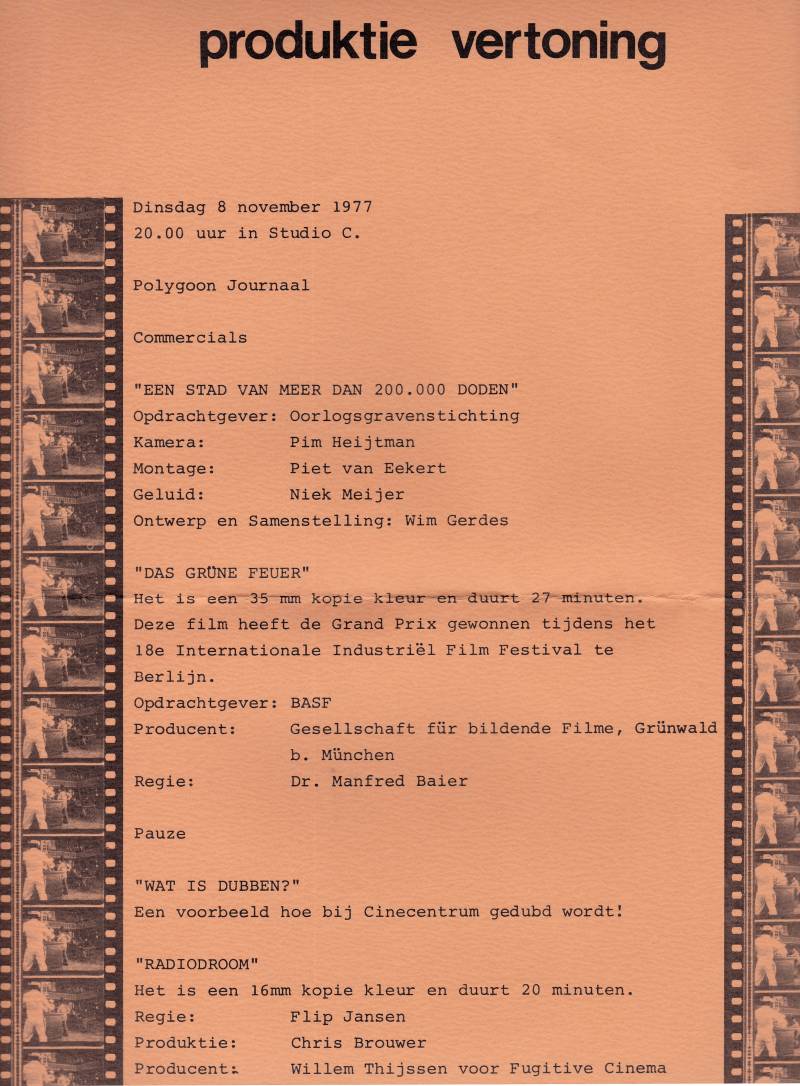 In dit boekje worden enkele bedrijfsfilms beschreven, die door Polygoon Profilti Productie gemaakt werden. Helaas is er geen datum bekend van dit overzicht.